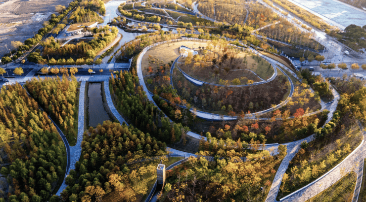 已建成约50万方的中央绿地作为桃浦区域转型升级的重要载体,在景观打造上借鉴了伦敦海德公园、纽约中央公园规划设计理念。建成后将成为中心城区最大的开放式公共绿地。