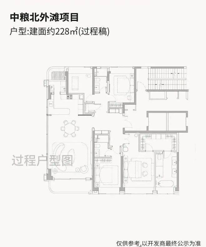 【中粮·北外滩壹号售楼处电话:400-9699-334✨【官方认证】✅✅✅】高层户型建面约185-228㎡纯粹4房,尺度感相当奢阔!高层户型均为两梯两户独立电梯厅配置,隐私性与尊崇感拉满!