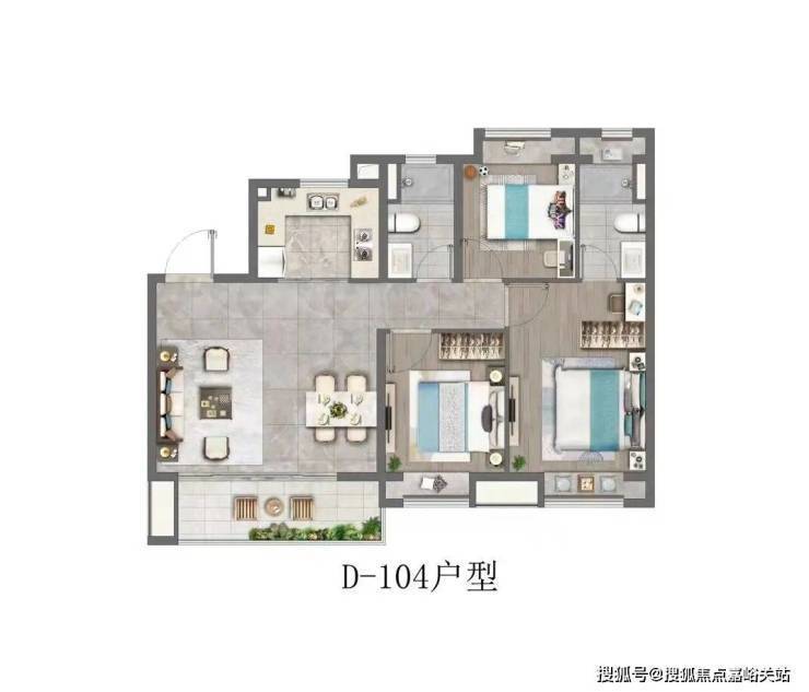 建面约125㎡三房两厅两卫:LDKB一体化阔绰横厅,南向宽景阳台,俯瞰社区园林与湖景,双卫设计规避早高峰拥堵,空间尺度舒适,适配三口之家、二孩家庭。