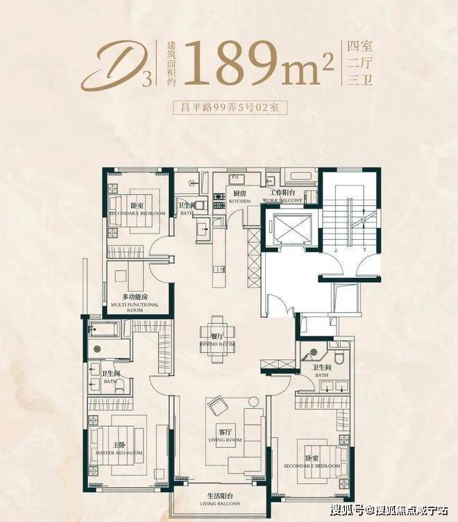 建面约176㎡4房2厅2卫户型: