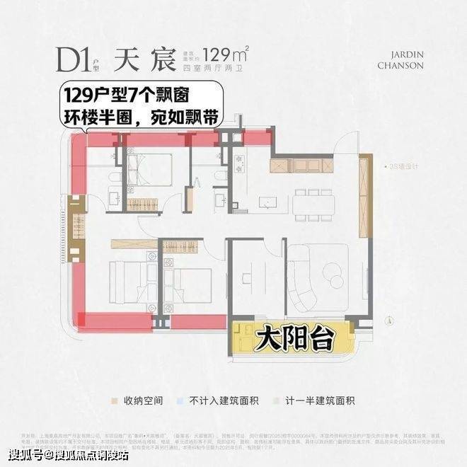 “不是飘窗,更像是飘带。”采光周长惊人,以129㎡户型为例,7个飘窗,环楼超半圈,宛若飘带。