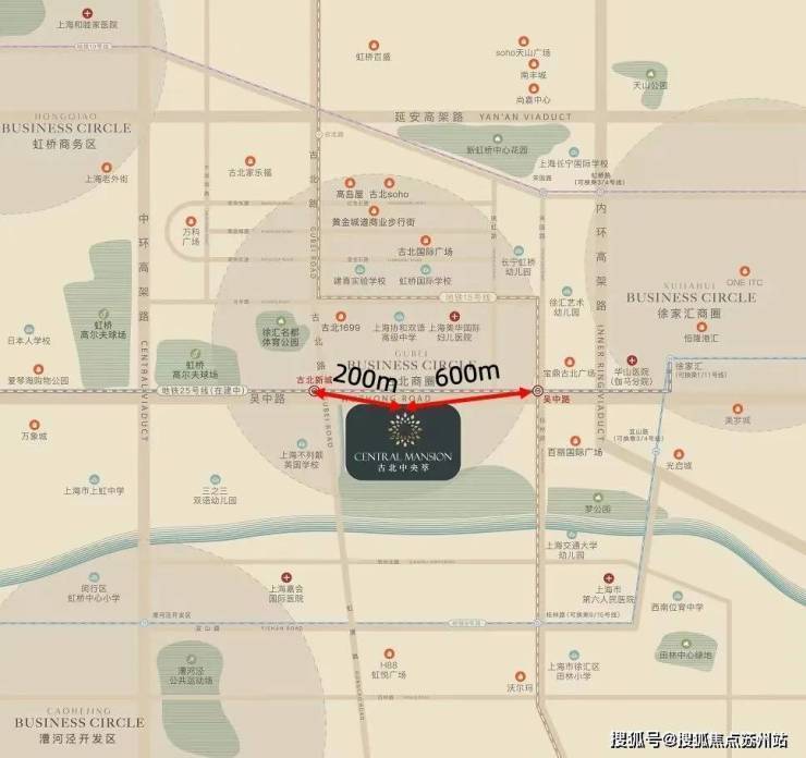 !与15号线吴中路站直线距离约600米,与25号线(部分在建)古北新城站直线距离约200米。