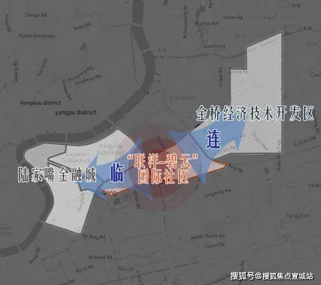 浦东新区的“联洋&碧云”国际社区,西侧“临”陆家嘴金融城,东侧“连”金桥经济技术开发区,而临港105片区数字化服务与国际社区同样北面“承”金桥研发产业,南面“接”开放区金融,两者有异曲同工之妙。