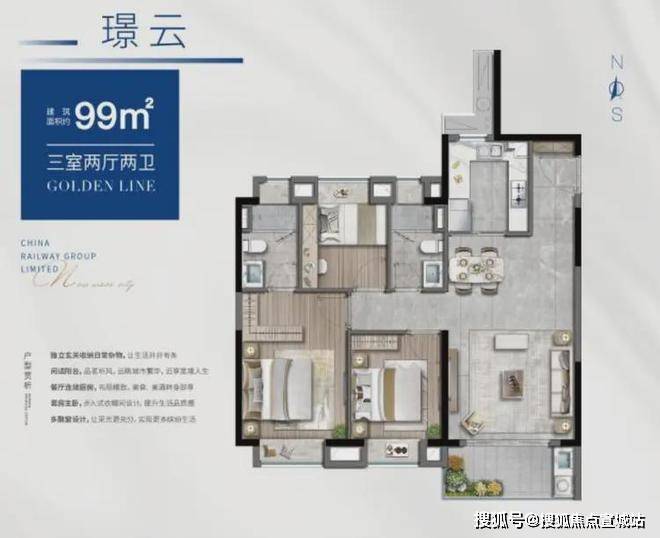 约89㎡的建面即能实现3房功能性还有2卫,主卧实现套房配置,放眼全市性价比都分外突出!格局上做到了三开间朝南,采光效果佳,客餐厨一体化减少动线,对室内面积极致利用!