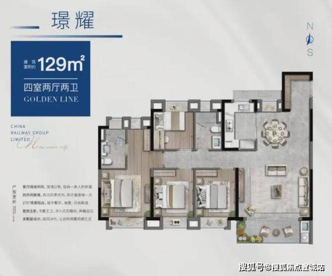 建面约129㎡,实现4房功能性,匹配当下越来越多的二胎和三代同堂家庭!格局上实现了惊人的四开间朝南,约4.8米大开间客厅,客餐厨一体化,外接观景阳台,尺度感爆棚!