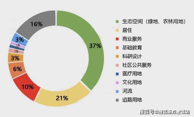 规划用地类型:105北,即数字化服务与国际社区,生态资源充足,蓝绿系统交织,规划有37%公园生态空间和3%的河道水系;同时,各类生活服务都比较完善,有10%的商业服务、6%的基础教育和2%的社区公共服务用地。