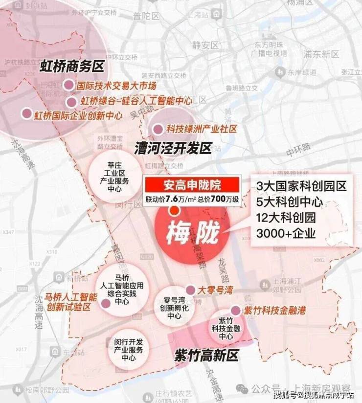 安高梅陇项目东至梅富路,南至梅南路,西至集心路,北至梅美商务园区,位于春申景城湖畔林语东侧,房地联动价76000元/㎡!项目占地面积约5.64万方,计容面积约11.29万方,容积率2.0,绿地率35%!