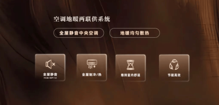 ◎ 衡温:四季如春的体感呵护。采用大金空调地暖两联供系统,送风均匀、静音节能,冬日地板均匀散热,赤足行走亦生暖意,让四季体感始终舒宜如常。