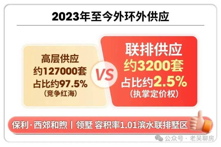 2023年以来,上海外环外高层供应占比约97.5%,联排别墅仅约3200套、占比2.5%。