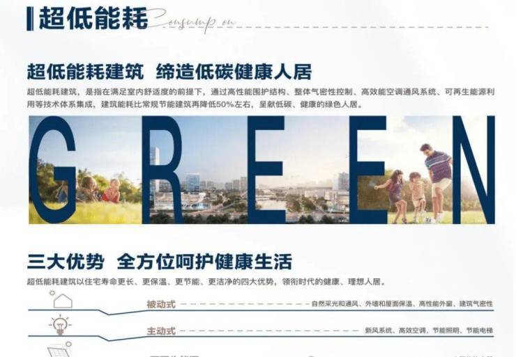 8大超低能耗技术 (通过外墙、屋面、门窗优异的保温隔热性能,结合具有高效热回收功能的新风系统的运作,使四季的室温维持在人体适宜的温度)之外,增加户式新风系统、高效VRV空调、局部太阳能热水系统、超低能耗围护结构、雨水回用系统、自动微喷灌系统、海绵城市等技术,使 项目达到国际绿色建筑更高标准:绿建三星级(住建部考核审定认证),领衔时代健康、理想人居。