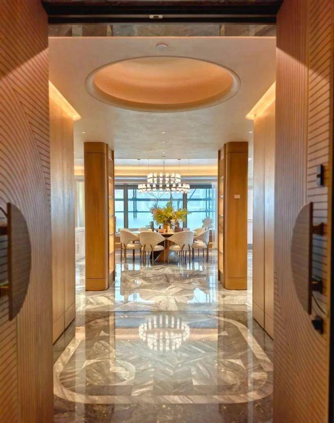 万科中興傲舍凝聚72种高端豪宅都难得一见的奢材,如皇家白奢石、Prada绿皮革面奢石、砖纹定制铝板等等,每一处细节都透露出精致与考究。