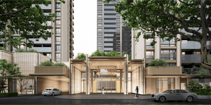 项目打造现代海派风格的外立面,线条简洁大气; 社区规划六重生活体验空间,从酒店式落客入口、镜面水庭到美学花园,旨在将高端酒店的奢享基因融入日常生活。