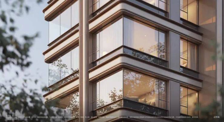 保利·江上印售楼处电话:400-8678-334☎️✽✽✽✽(官方认证)建筑外立面采用底座石材,东南西三面第一眼界面全铝板和玻璃幕墙,顶部鎏金塔冠点缀,实现 “四面平权”,在区域内实现了最高级的内透美学