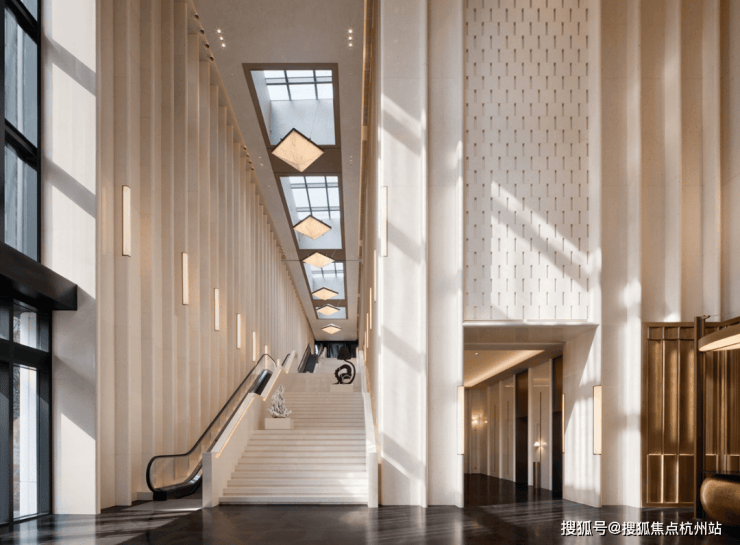 豪宅中,会所+泳池已成为市场标配,但是中兴傲舍却将之与艺术融合,把艺术变成了生活的一部分。14.5米超高挑空的归家大堂,搭配三大园景礼序和七重风雨连廊,从进门就仪式感爆棚。