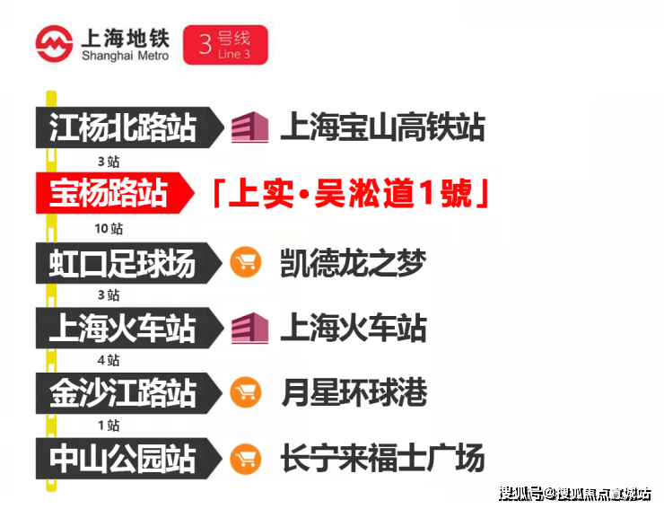 另外,沿地铁3号线宝杨路站出发,可以畅联凯德龙之梦、月星环球港、长宁来福士等多个超级商业体.