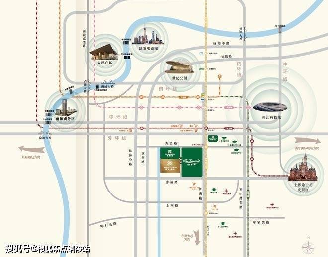 项目距离外环约1.5km,东侧紧邻沪南公路和地铁18号线康桥站,首先康桥东接迪士尼国际旅游度假区,北接联洋世纪公园,距离陆家嘴约12公里。