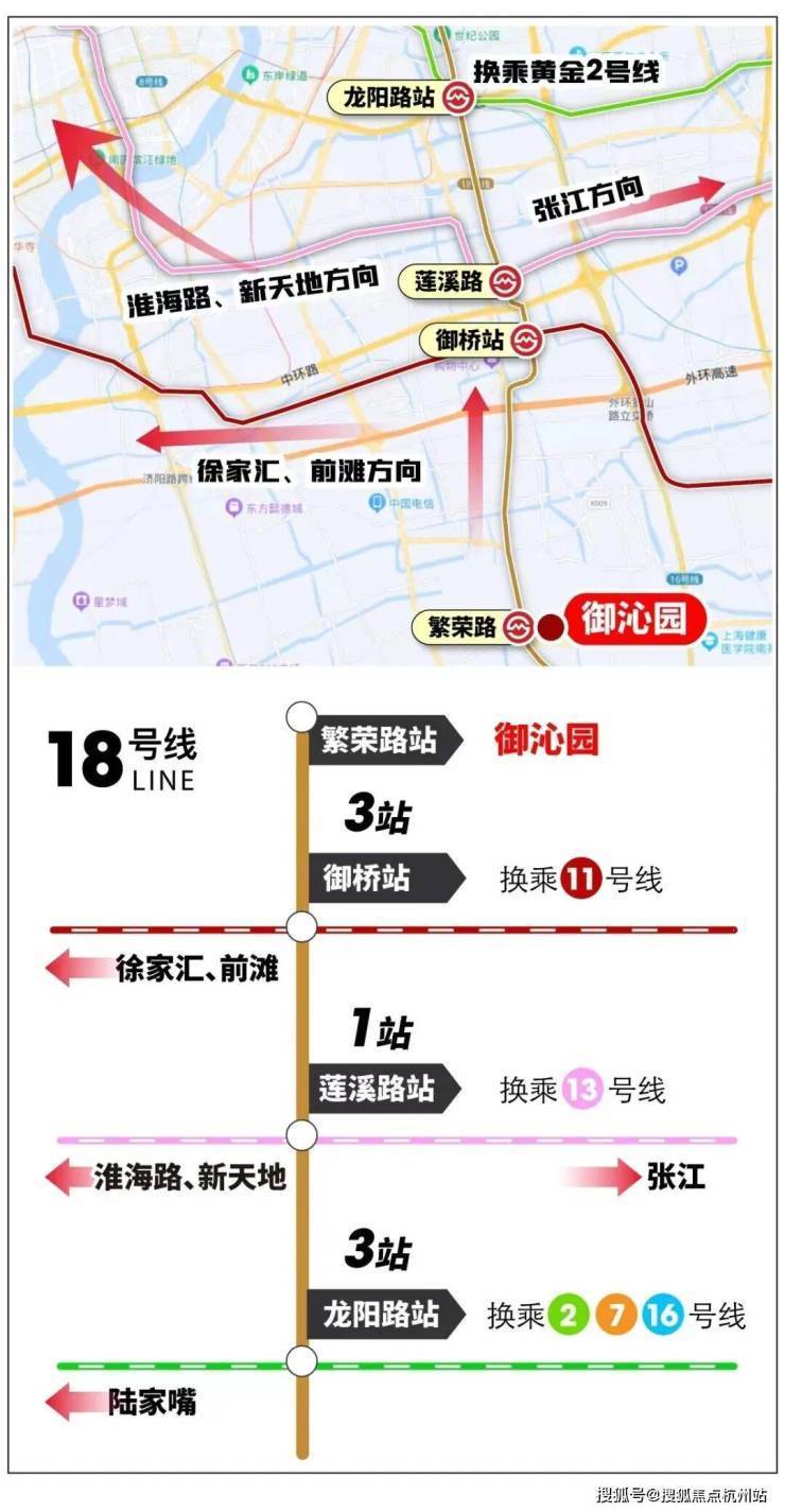 18 号线繁荣路站:步行约50 米(出门即达),直达前滩、张江、徐家汇。