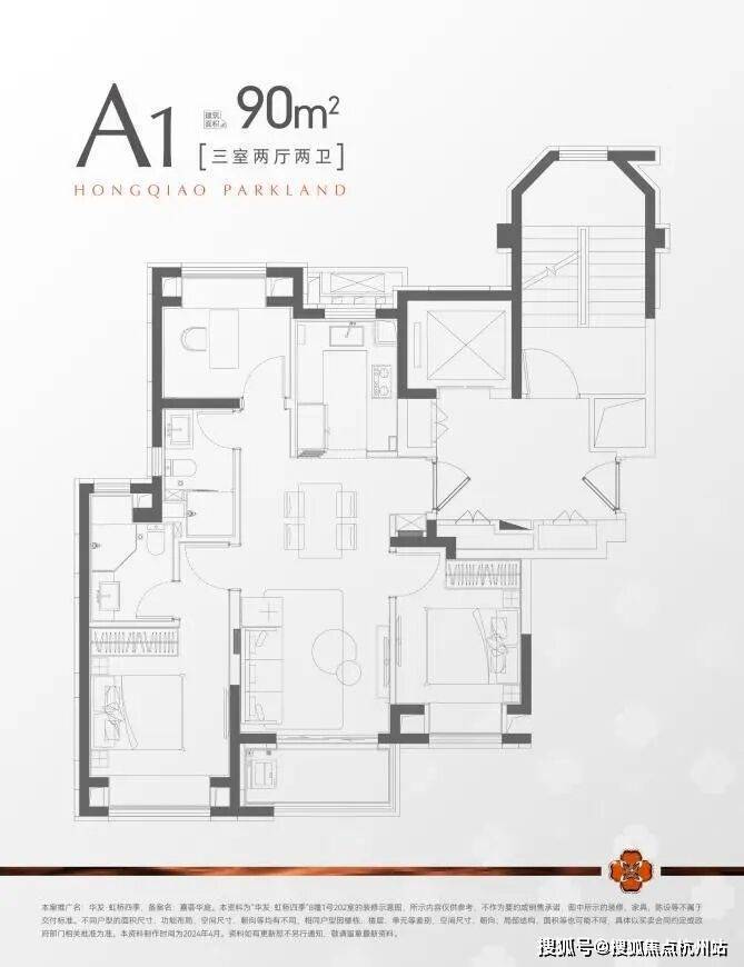 建面约90㎡的三房两厅两卫:这是一个让人一眼心动的户型。在别的楼盘,建面约90㎡做三房两厅一卫可能空间已很极限。但华发做到了双卫设计,完美解决了早高峰的抢厕尴尬,三开间朝南、飞机户型、南北通透,再加上U型厨房和主卧套房,这简直是年轻夫妻一步到位的“梦中情房”。