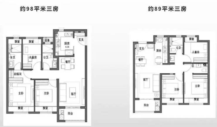 建面约98㎡三房,总价约518万起
