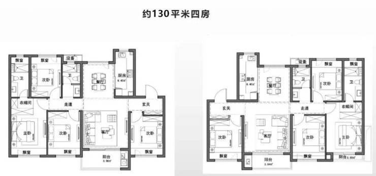 建面约130㎡四房,总价约713万起