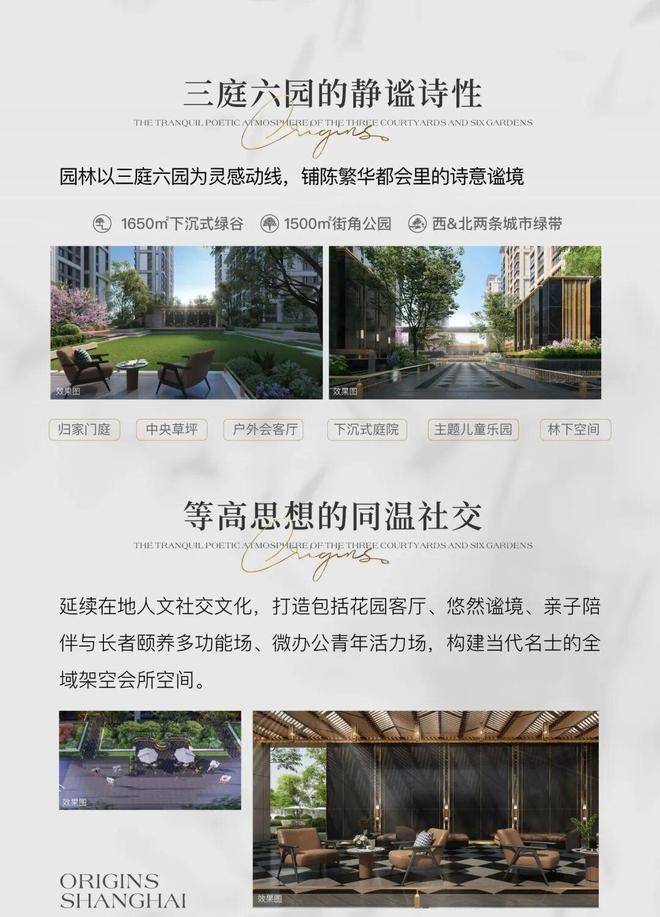 项目打造了摩登会客厅、童梦嘉年华、洛克花园秀场三大沉浸式美学生活场景,满足全龄人群的休闲散步、会客洽谈、儿童玩乐、邻里社交的不同需求。