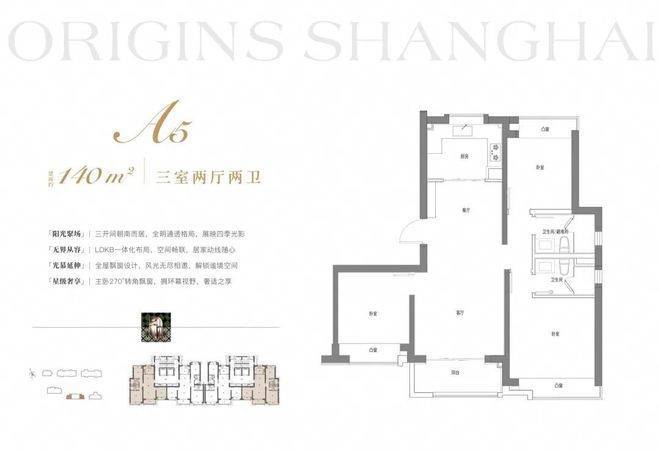 建面约143m²3房2厅2卫:格局上做到三开间朝南+南北通透,让业主起居之间沐浴更多阳光。