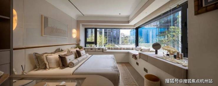主卧拥有 270度环幕飘窗, 视野和采光优越,配备了高奢卫生间,空间感、尊崇感拉到顶格。