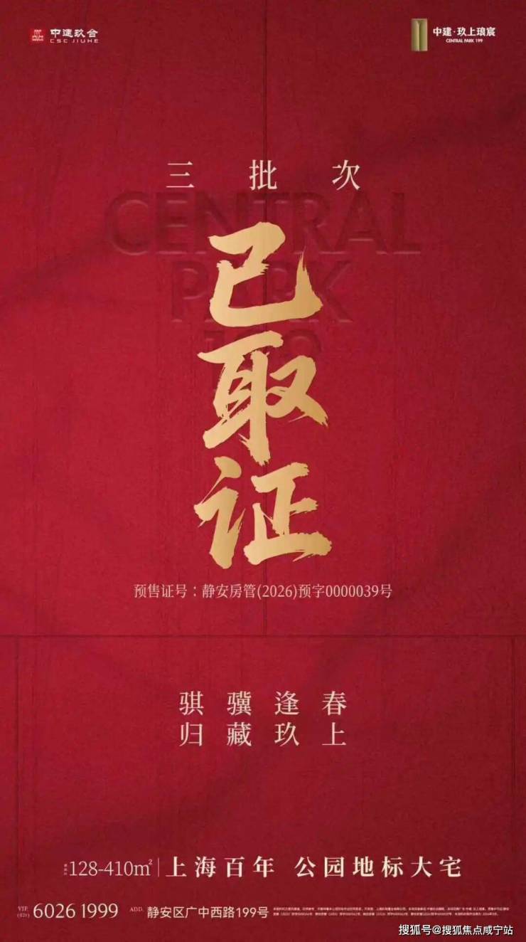 最新消息,静安大宁「中建玖上琅宸」三期在售中!推出建面约128-280㎡三房四房!内附一房一价表!