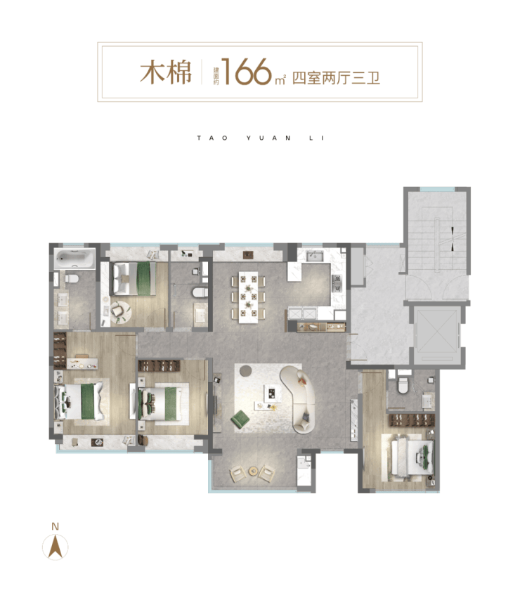 建面约 166-178㎡四房两厅三卫:高端改善,一步到位
