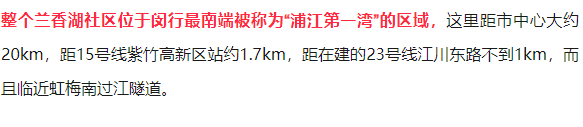 兰香湖贰号官方售楼处电话☎️☎️:400-8800-430位于闵行区吴泾的紫竹高新技术产业开发区,紫竹园区是上海四大高科技园区中唯一以美国硅谷为蓝本设计的高新开发区,也是南上海的科技中心,汇聚了一大批世界500强和研发总部。作为国家级别的高新区,紫竹国家高新区的重任显而易见,其产业主要以信息软件、数字视听、生命科学、智能制造、航空电子、新能源与新材料为支柱的高端产业结构。