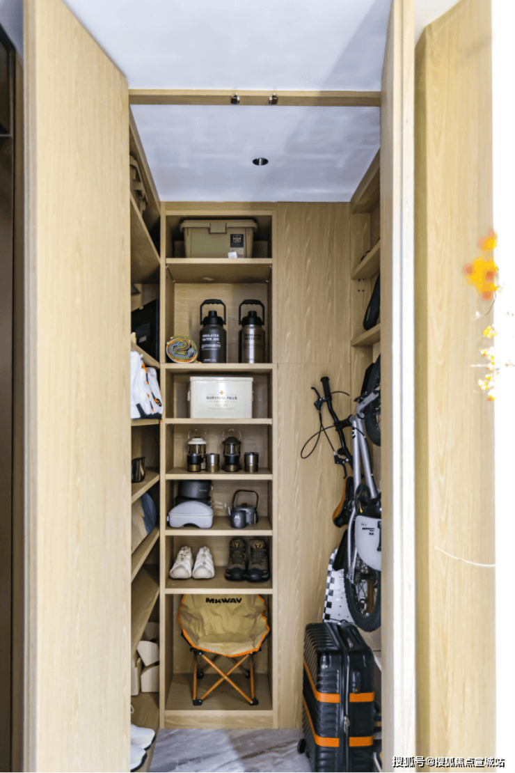 独立电梯厅营造出私密的归家体验,延伸了生活的尺度。入户门厅巧妙过渡内外空间,配备钢木子母复合门,安全可靠;门锁选用凯迪仕五合一智能门锁,支持多种解锁方式,配备室内大屏,科技感与安全感并存。