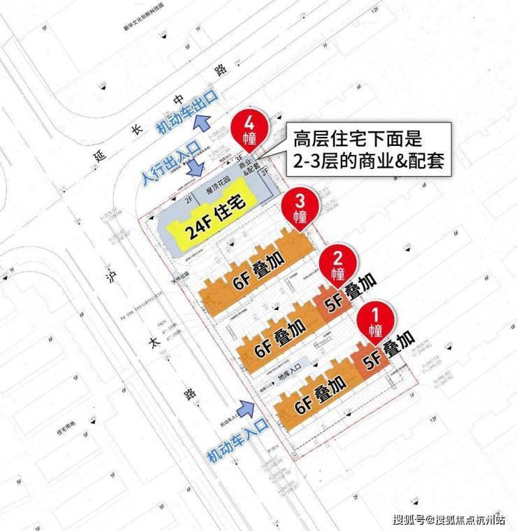 此外,小区实现完全人车分流,小区一共3个出入口,其中车行出入口可直接到达地库,车辆无需在小区内穿行,实现了人流与车流的完全分离。