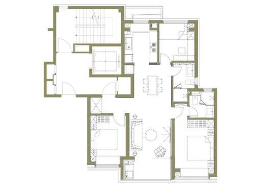 户型几乎无连廊设计,有效规避传统连廊户型的采光不足与隐私泄露问题,打造全明通透的飞机户型,得房率与居住舒适度均优于同类型产品。