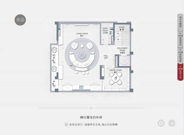 会所内则涵盖健身房+冥想空间+桑拿区+棋牌室等功能。为业主的社交提供场所,为业主的日常休闲提供服务!