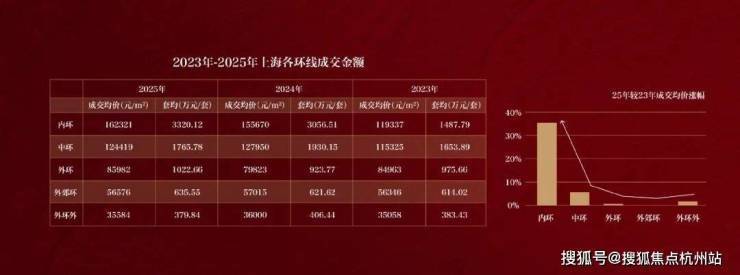 从近三年上海成交数据看,中外环以及外环外成交价格基本保持稳定,内中环稳步上涨,唯独内环内呈现跳涨态势。数据显示,内环内新房成交均价从2023年约11.9万/㎡跳涨到2025年约16.23万/㎡,三年涨幅达到36%。