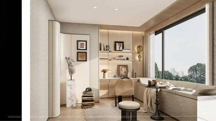主卧套房尤其吸睛!以270°转角飘窗打破传统空间边界,配合双台盆、大尺度衣帽间等顶配细节,将奢华居住体验浓缩于每一寸空间。飘窗台延伸出的休憩区与窗外景观形成对话,让私密时光也充满诗意。