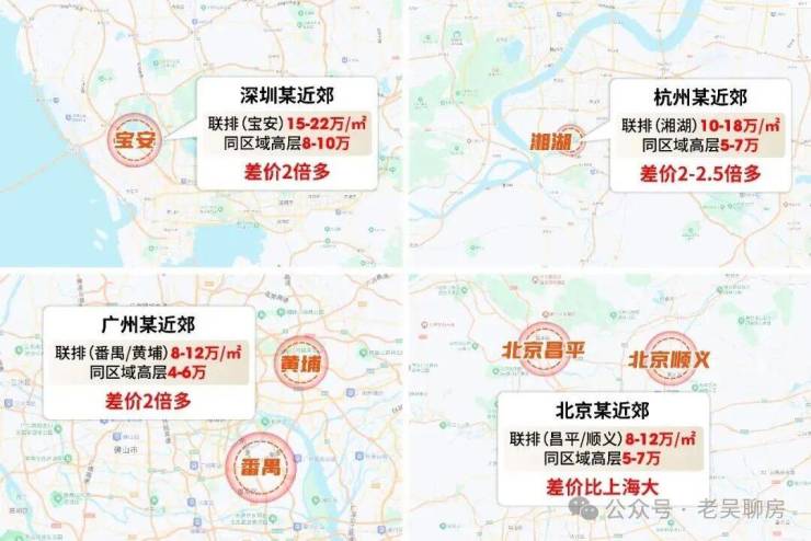 比如,上海近郊联排单价普遍在7-9万/㎡,总价900-1500万;而周边高层/洋房约4.5-5.5万/㎡,联排与高层比值仅为1.6-1.7倍。