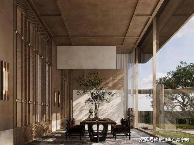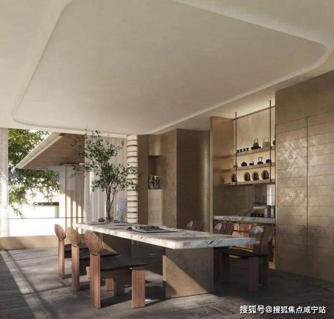 “回归之境”以3500㎡下沉水苑为核心,汇聚会客、泳池、茶室等多功能空间,形成仪式感十足的社区舞台。