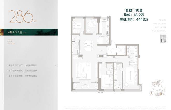 286㎡,4房3卫,单价18.2万