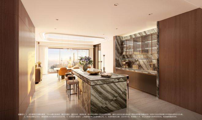 更细节的是,西厨吧台采用“东方木纹石材”,独特纹理与质感让每一次咖啡手冲都成为“生活美学的展示”。
