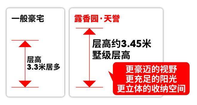市面豪宅层高普遍3.3米,而露香园·天誉层高达约3.45米,堪比别墅。