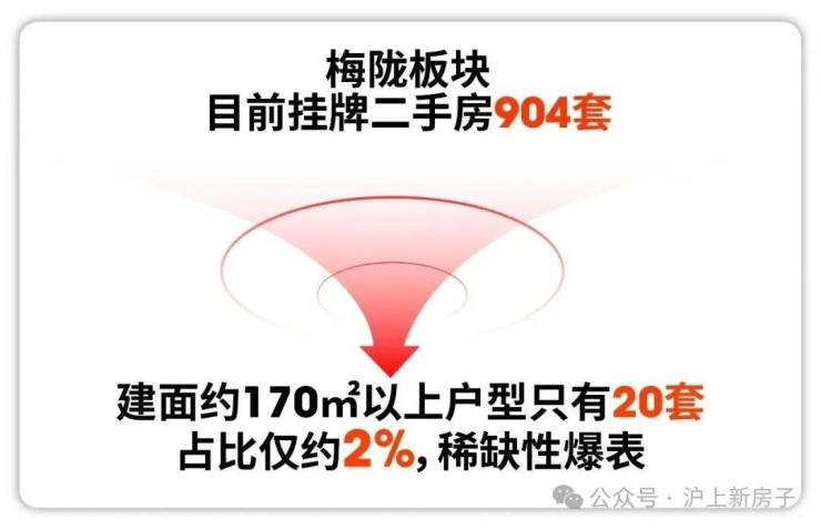 同步我又看了梅陇的挂牌情况, 板块内904套挂牌,170㎡以上的也只有20套, 占比还是2%!