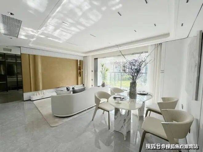 招商中旅·观境的解决方案是“零无效空间”。通过整合餐客厨等公共区域厅,将原来南北厅中间的走廊空间融合到使用空间中,减少过道的面积,避免碎片化的空间带来的冗余浪费。大面宽,短进深,餐厅与客厅横向相连,每一平方米都物尽其用,把客厅升级为家庭互动主场。