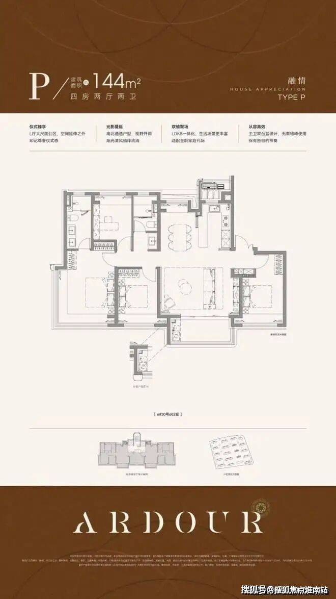 再来看下建面约144㎡4房,部分装标是有所升级的。