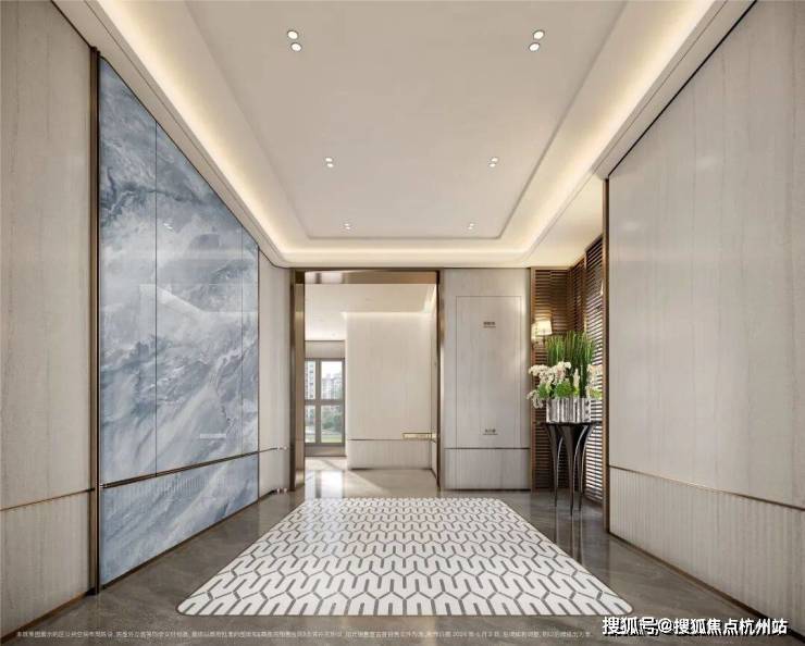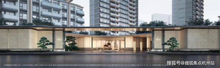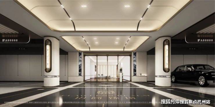 酒店式门廊作为归家的第一道风景,招商臻境以空间大尺度与高级奢石的材质使用将尊崇的归家礼遇感拉满。近50米宽,高度约5.3米高,开口约11米长的高规格酒店式大门。选用了贝金米黄石材作为墙面主材,墙裙用印度蓝石材做装饰。两侧甄选了两颗名贵的罗汉松,有着恭迎归家的美好寓意。