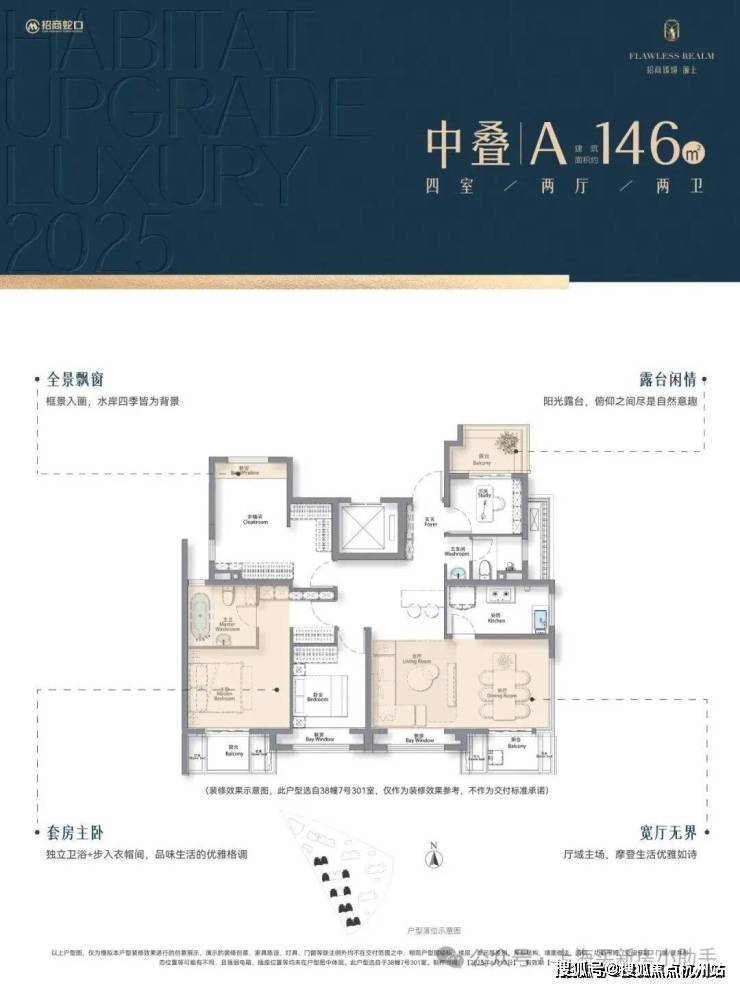 √中叠约146㎡四房大平层空中花园峯范场餐厨客书房无界贯通,形成超级家庭交互场域南向四开间引光入室,全景飘窗框画水岸四季套房主卧,舒享自在的私人场域