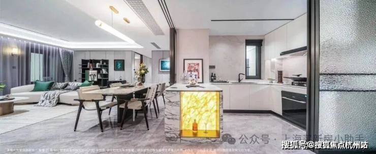 创意展示空间处处展现了海派风韵,例如更耗时更费钱的带弧度的半圆形吊顶!以及厨房的三轨道移门的水波纹玻璃,更具奢华腔调!