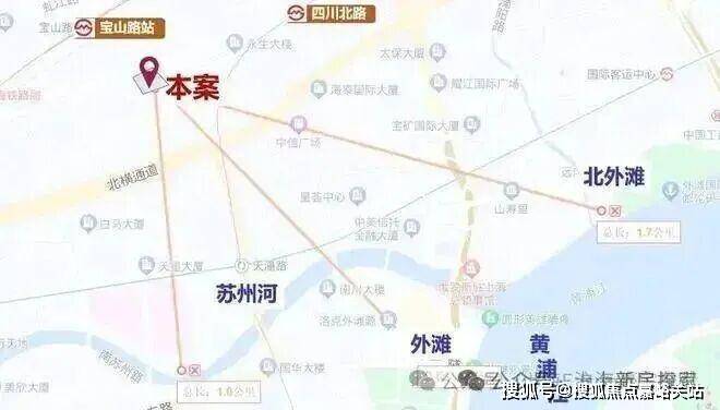 仅从图上看,该地块直线距苏州河约1公里,直线距外滩约1.4公里,直线距北外滩约1.7公里,直线距3/4号线宝山路站约300米,直线距10号线四川北路站约560米,区位优势明显。