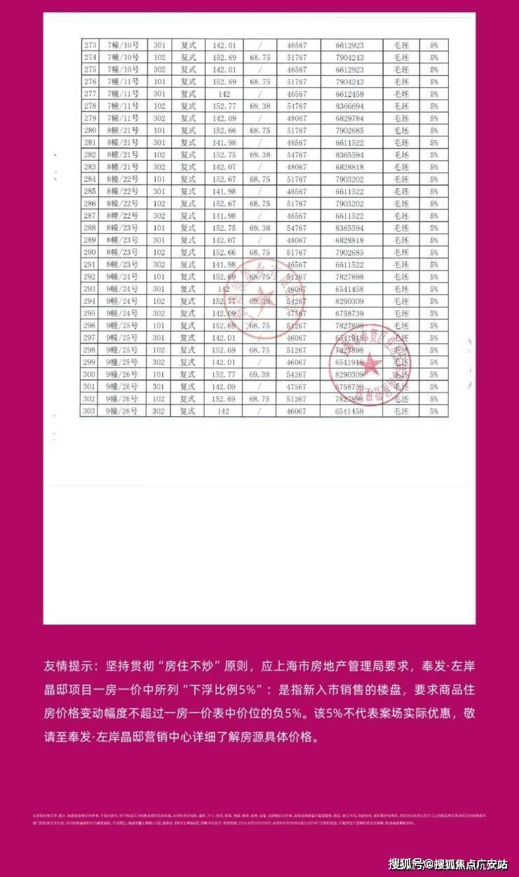 一房一价表发布: