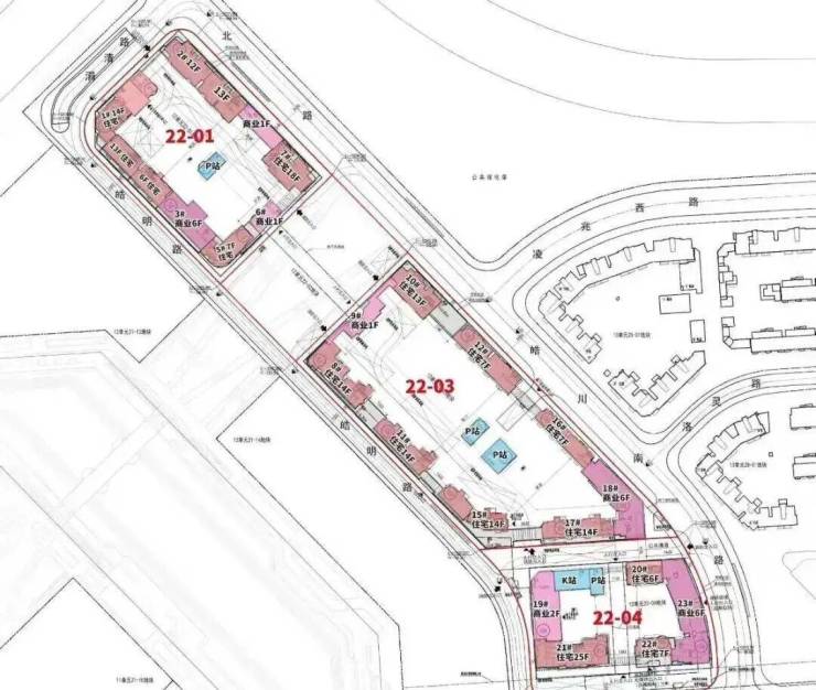 22-01地块占地面积1.1万平方米,总建筑面积5万平方米,包括4栋住宅楼、2栋商业;22-03地块占地面积1.6万平方米,总建筑面积6.7万平方米,包括7栋住宅楼、2栋商业;22-04地块占地面积0.9万平方米,总建筑面积3.8万平方米,包括3栋住宅楼、2栋商业。